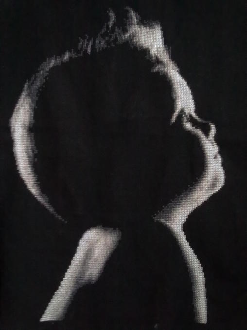 А я такую недавно вышила,но у меня типо девочка(сзади немножко волосиков).Девочка переделывала схему.Сейчас покажу,но качество не очень