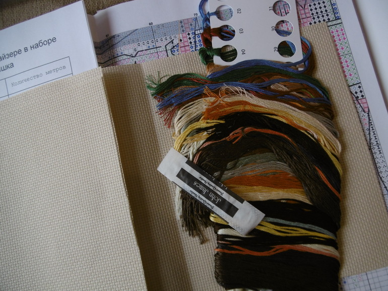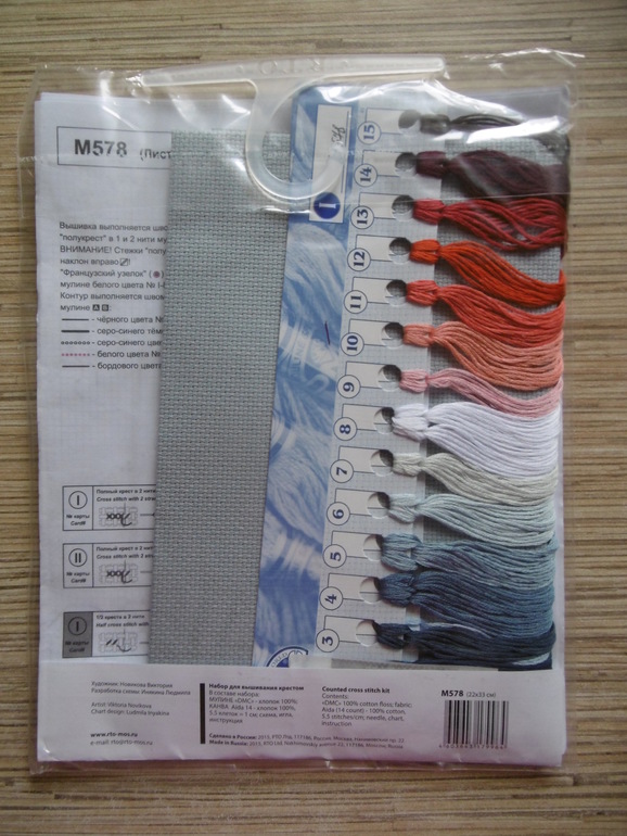 В состав набора входит: канва Aida №14 ZWEIGARD (Германия) бежевого цвета, нитки DMC (Франция), игла, схема, инструкция.