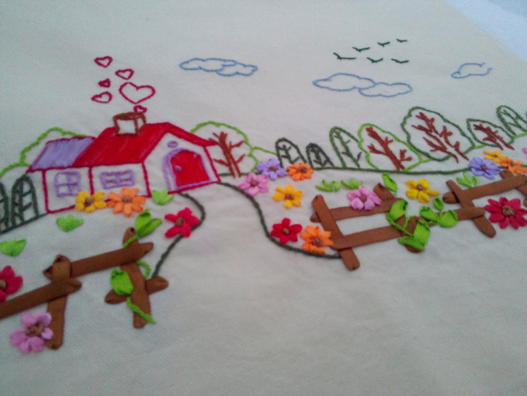 Вышивка лентамиВсем привет! Ох и накопилось у меня долгостройчиков и долгостроев! Ругаю себя "на чем свет стоит"! Решила в этом году закончить всё что начала раньше! Первая работа готова! хочу представить её вашему вниманию!