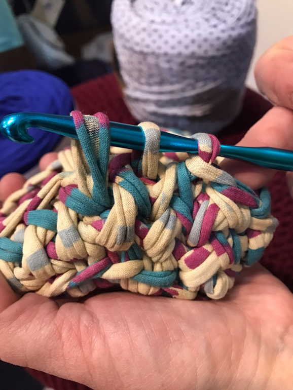 Это я решила повязать коврики - их мне только не хватало! Сфотала как надо крючок засовывать.