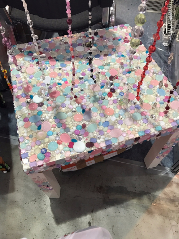 Стол и стул из икеи обклеины стекляшками и все их шУпают