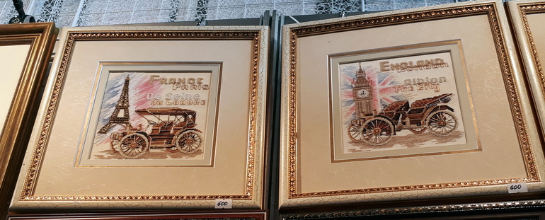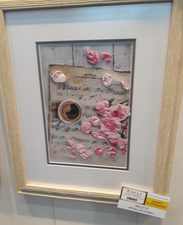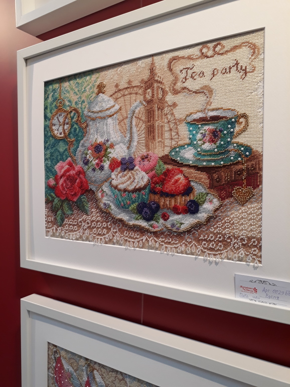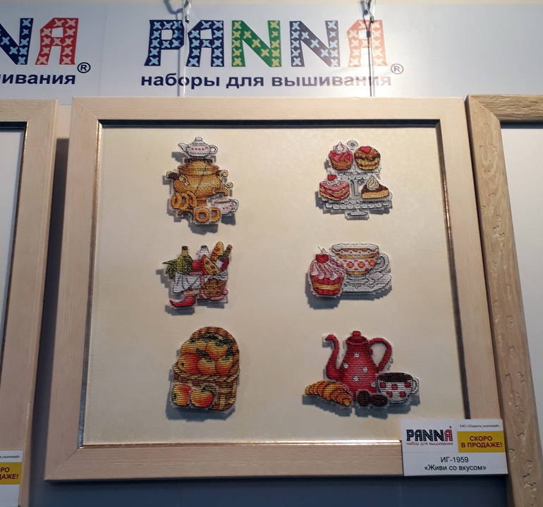 Риолис. Понравилась балеринаиз новинок (фото, увы нет), но она огромная просто. Русскую охоту тоже не удалось вблизи посмотреть. Зато панельки с наперстянкой и мальвой разглядела во всей красе (моя мама, кстати, уже прикупила себе одну из них)))