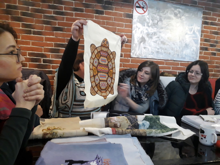 Ну, пожалуй, по выставке все.Дальше будет вторая часть - встреча вышивальщиц. Я, честно, раньше даже не думала, что когда-нибудь попаду в подобную компанию. Но звезды сложились так, с девочками-организаторами я познакомилась в одном совместнике и они-таки сподвигли меня прийти на эту встречу. Нас было много - аж 20 человек)) и все такие разные)) с такими разными работами) я даже не все успела поближе рассмотреть. Но какой же это кайф держать в руках чужие крестики.
