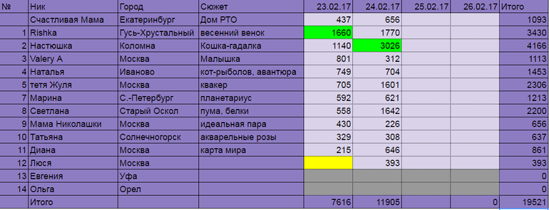 Всем привет) ..после двух предыдущих активных дней скорость моя уже снизилась..домашние дела уж слишком отвлекают .. За 25.02 будет 276 кр.+ 3%= 284. Надеюсь, что удастся хоть еще немного поковырять сегодня вечером..перед началом рабочей недели))