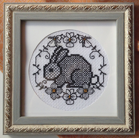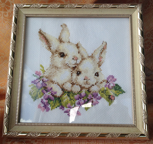 Когда то еще вышился зайка на пасхальный конкурс, теперь он в такой рамочке