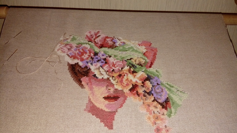 Добрый вечер всем! Погода у нас тоже не очень. Опять выпал снег и резко похолодало. С вышивкой я эти дни прям дружу. Шляпу своей даме закончила, теперь перешла на кружевную одежду. Очень нравится отшив! Мое было