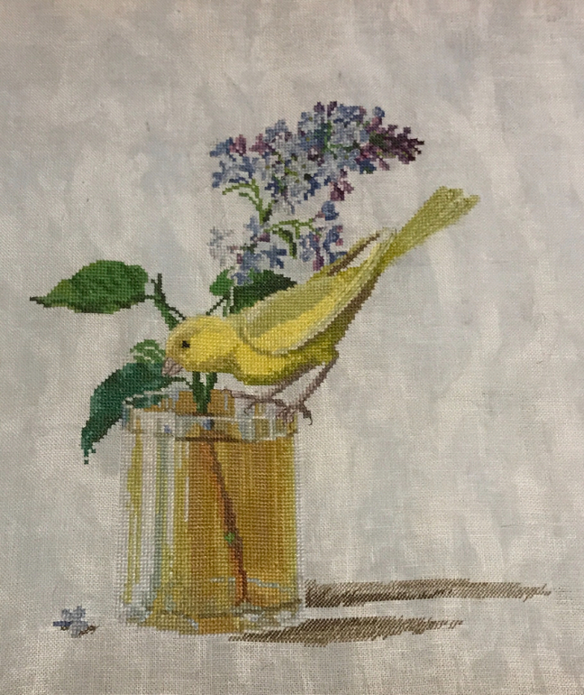 Поздравляю с окончанием! На таком льне птичка выглядит более реалистично-винтажно, чем на однотонной. Молодец. Теперь ждем хваст в оформлении...
