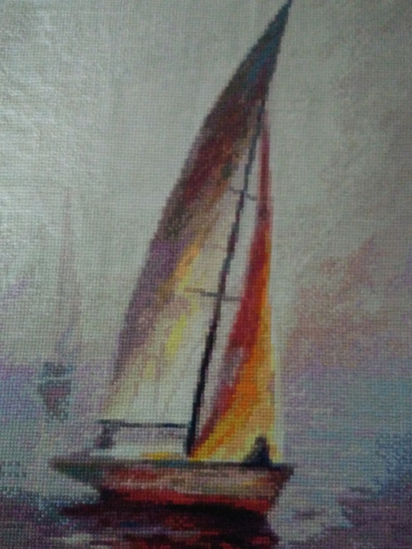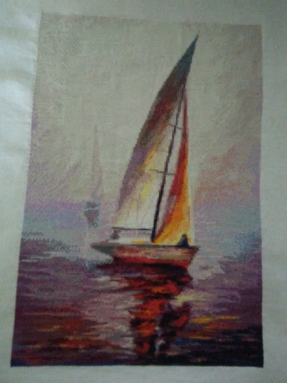 Попросила меня сестра вышить ей этот парусник. Купила схему в кортель дезайнеров.