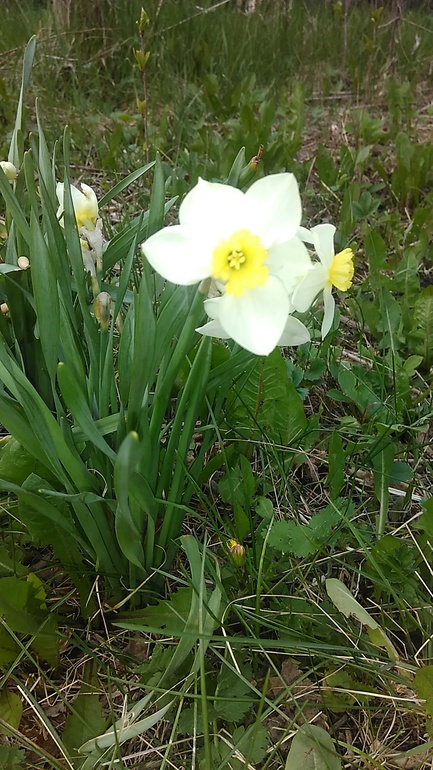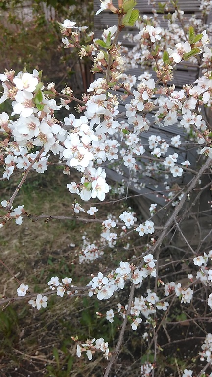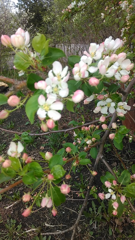 Сверху вниз: нарциссы, яблоня, вишня и гибрид крыжовника со смородиной