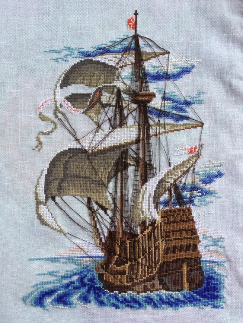 Анастасия вышивала парусник от РТО в подарок мужу с пожеланием успеха в делах