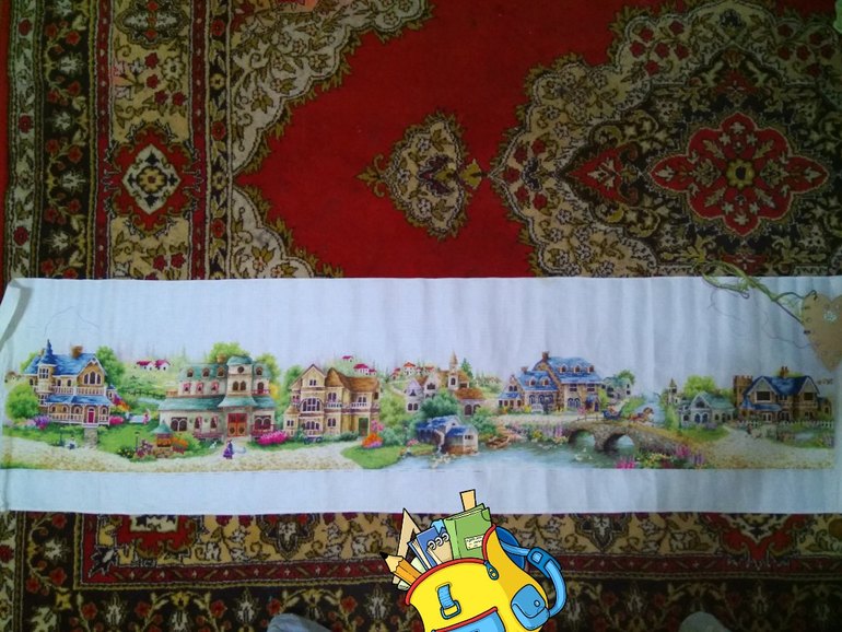 в общей сложности ушло на роботу 3 месяца 167 в длину и в ширь +-27 дались мне легко даже очень , а все иза очень правельной организации процесса вишивки