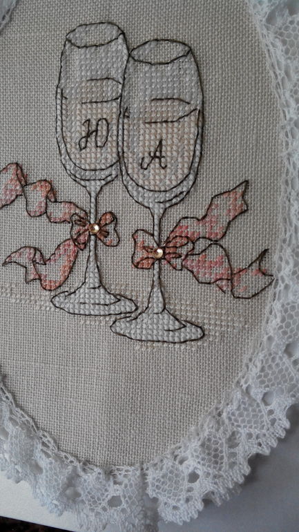 Вышивка крестомКак то очень быстро пролетел год со дня свадьбы моей дочери. По случаю первой годовщины сотворилась у меня открыточка в стиле прованс. Отшито на льне по авторской схеме из журнала.