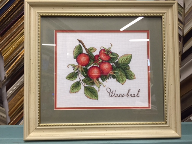 Вышивка крестомОформились замечательные вышивки 1. Золотые ручки "В засаде", 2. МП-студия "Дары природы" Шиповник и Крыжовник. Оформление бюджетное, багет пластиковый, двойное паспарту, стекло обычное.