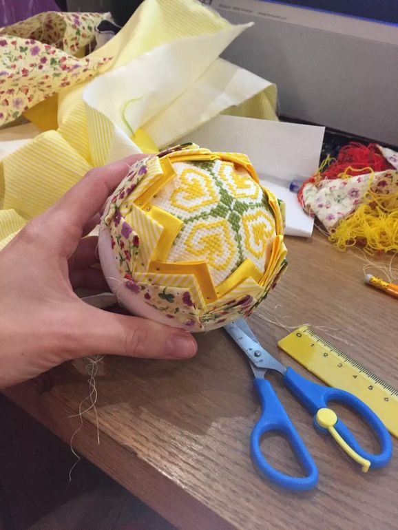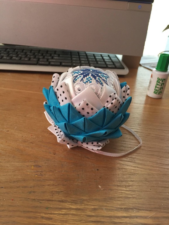 Шарик новогодний в технике артишок,вышивка его оживила и нарядила