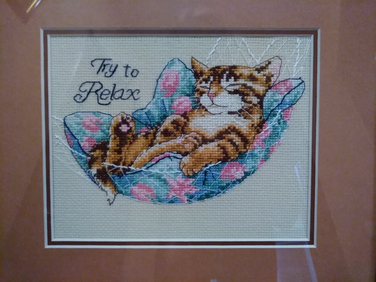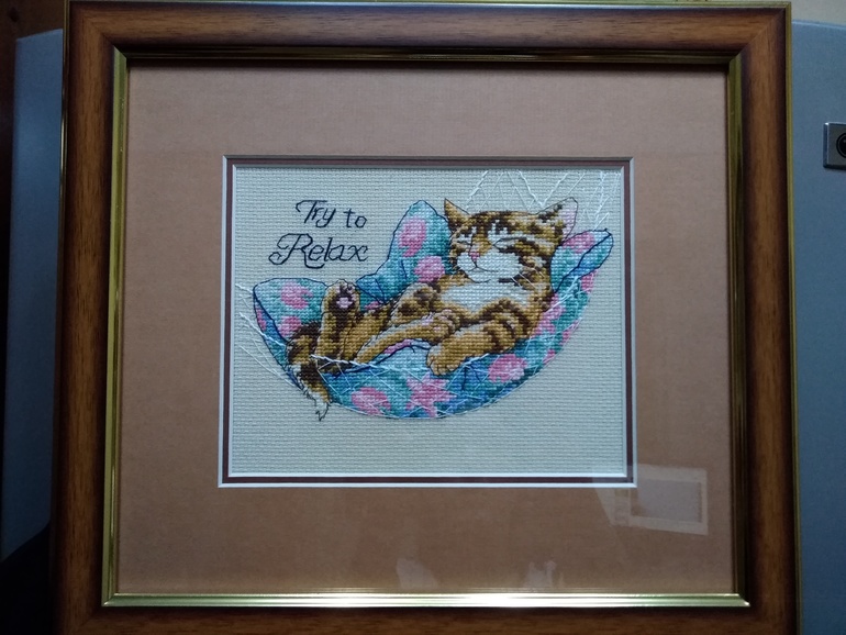 И бонусом "Попробуй расслабиться. Вышила работу в 2014 году, но все забывала оформить