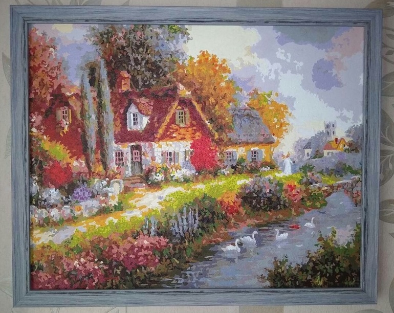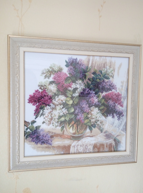 Очень понравилась картина по номерам, муж молодец! И с окончанием сирени! Получилось очень нежно!