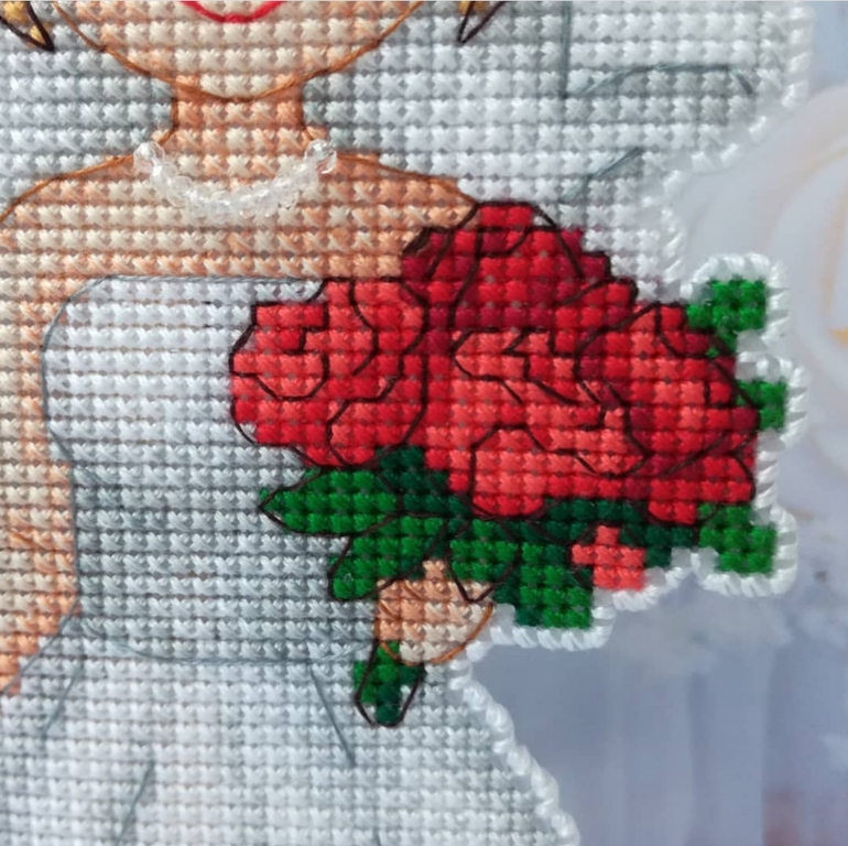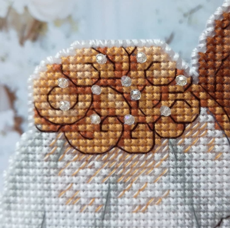 Вышивается он достаточно легко, но в процессе работы поняла, что кое-что мне не очень нравится, поэтому некоторые детальки я поменяла.