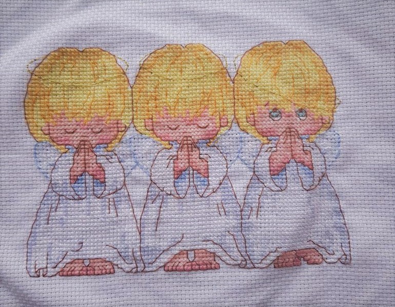 Работа постирана, отглажена, но залом от пяльца не проходит - слишком долго видимо держала.. Перед оформлением буду пробовать основа отгладить, пока отлеживается под "прессом"