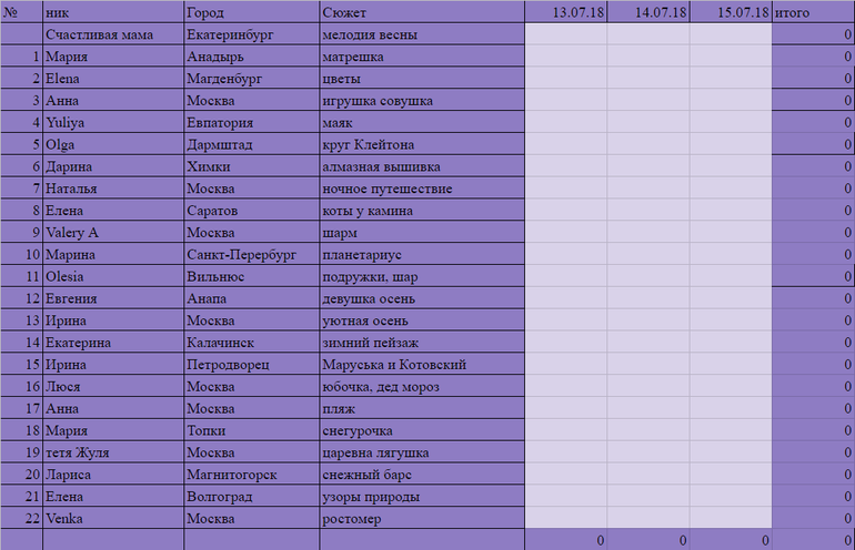 Я раньше с азартом бегала, но сейчас появился муж и ещё один ребёнок, и уже не до вышивки=( и я сейчас точно знаю что в тройку лидеров мне не попасть