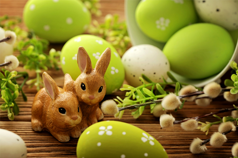 Пасха: в первую очередь идет все-таки ассоциация с растениями - вербой. Животные: курочки, цыплята, утки, а потом уже благодаря западу - кролики.