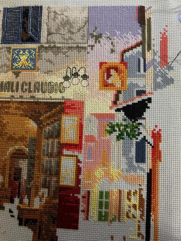Я бы точно все продолжила в правильную сторону. Не такая уж огромная разница в той части, что вышита, да и бэком выровняется. Деталей много, глаз не цепляется. А внизу и на переднем плане если будет в нужную сторону, то и тени лягут. Заново-жаль, разница с перенабором ощутимая, да и вообще..