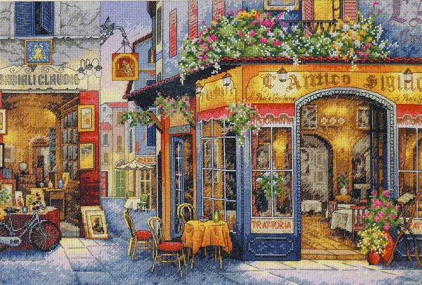 Сюжет - мечта! А много полукрестом вышито? Думаю что под столом заметно будет, там где тени =( я бы переделала