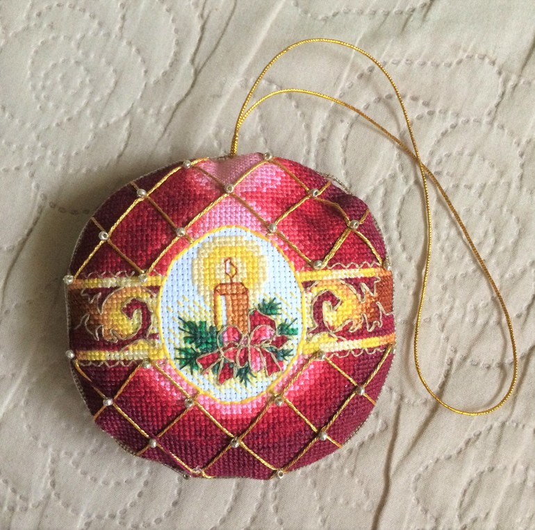 Потом потихоньку ковыряла остальные давно начатые работы и много шила пэчворки. Ну и под конец года смастерила такой шарик: