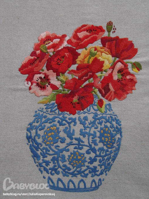 вышивала год..в основном вазу..а потом за 2 недеи закончила маки)