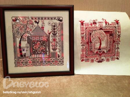 Это мой самый грандиозный и масштабный проект на сегодняшний день, который кроме того был одобрен и оценен моим привередливым мужем)))) Единственное что меня смущает, так это то, что при отшиве оберегов использованы нитки разного оттенка. Первый оберег вышивался финкой, а второй гаммой, так как приобрести нитки нужного оттенка было невозможно даже по заказу(((((. Но думаю после оформления разница не будет столь заметной.