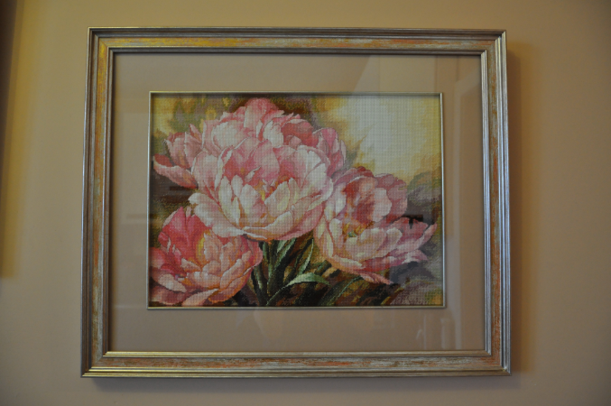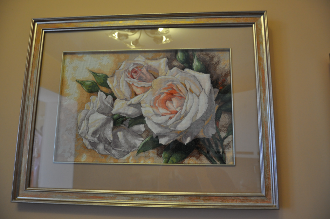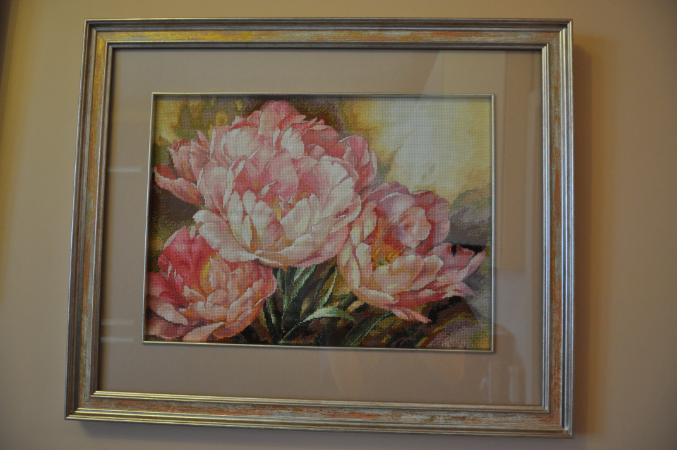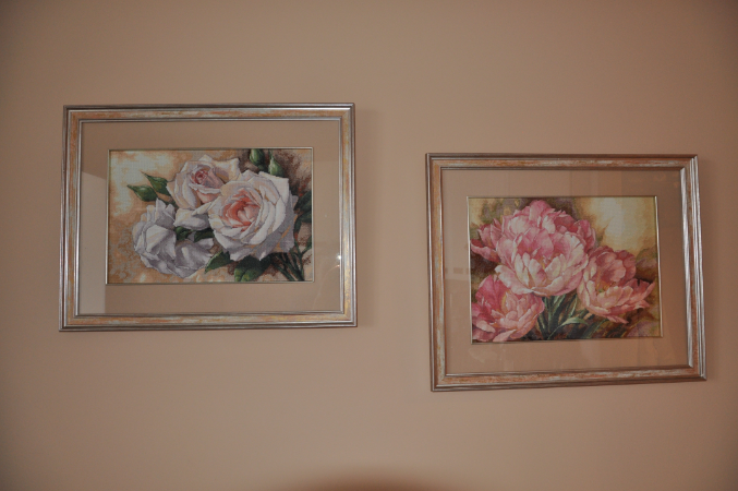 Вышивка крестомВот и оформились мои работы. Очень уж я ждала, когда они займут свое место на кухне, специально под них была оставлена целая стена. А ждать их пришлось долго, никак тюльпаны не хотели вышиваться((( Не была уверена в оформлении, но когда повесила на стену, то все стало на свои места. Лично мне нравиться