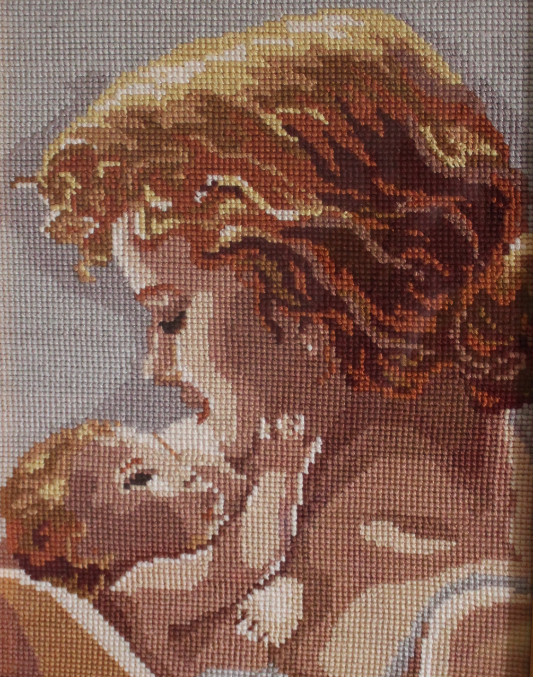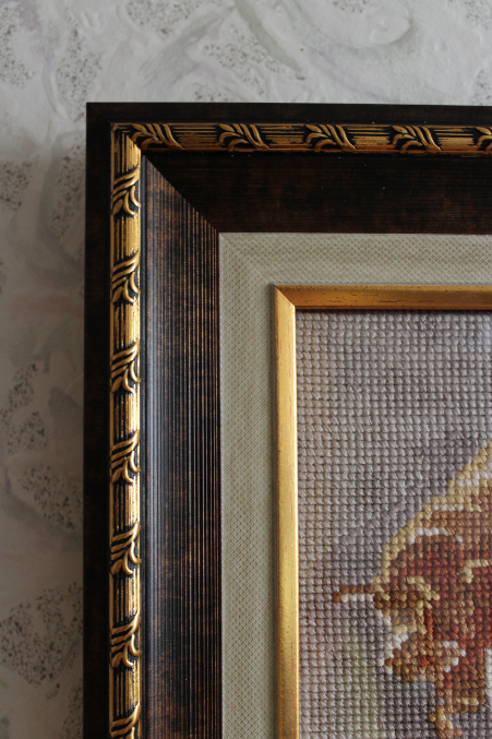 Закончила перед роддомом, кое-как после натянула в рамку А4 (о багетка тогда и не знала), и вот спустя еще 2 годя я донесла ее до багетки, вчера забрала только. Отзыв о багетке тут.
