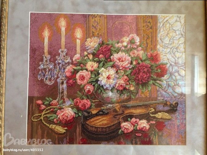 Ушло на картину 3,5 месяца...Было сложно очень.Допускала ошибки,распускала и снова начинала..Меня предупреждали,что для первого раза это сложно...Но потренировавшись на малюсеньком тигренке я взялась))Начала в сентябре,торопилась с маминому дню рождения в октябре))))Естественно не успела...получилось к Новому году...