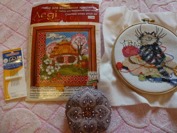 Обмен подаркамиПосылочку от Лночки @chayka79 получила еще 10 мая, но с этой работой совсем замоталась. Выставляю сейчас. Подарок просто замечательный. Котик шаловливый, сынулька себе хотел забрать. Наборчик с хаткой обязательно вышью. Еще я всегда как-то достаточно прохладно относилась к бискорнюшкам, но эта меня поразила в самое сердце. Да еще она и со слоником, которых я собираю. Теперь это моя самая любимая игольница.