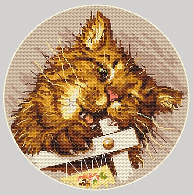 Вот это мордашка! На моего похож, но он не грызет станок, а только трется об него и мулине крадет, если не спрятать