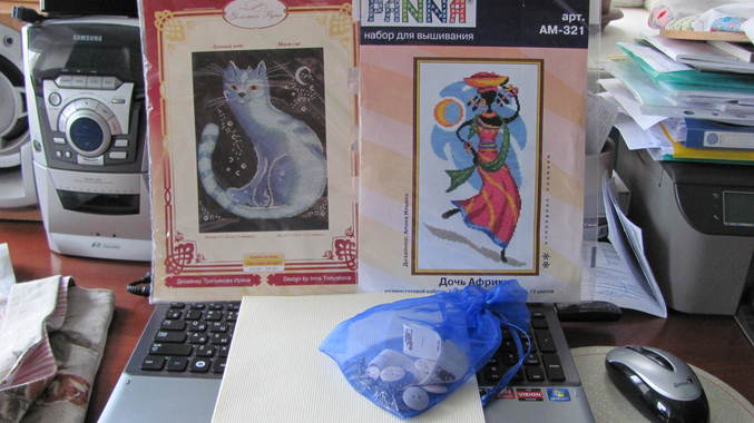 А вот и наборчики, канва, пуговки, подвесочки и лента!