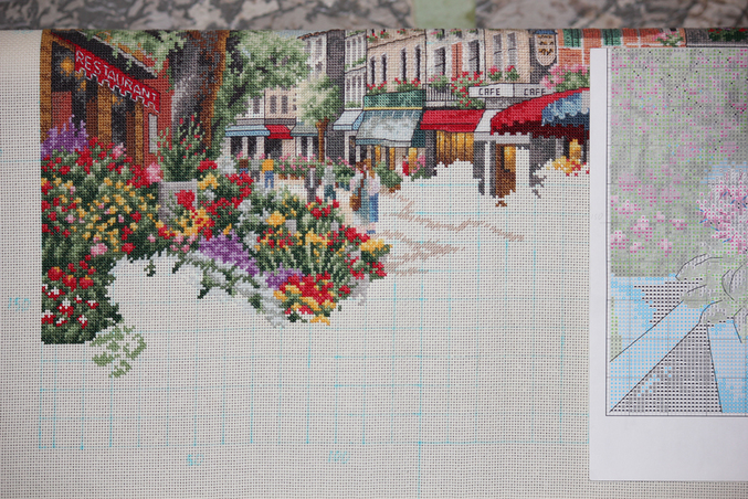 Нывышивалось все по плану закончила верхний левый угол и даже приступила к низу было