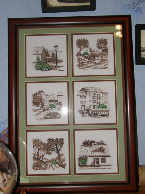 Есть вопрос!Вопрос, собственно, вот в чем. Там 6 маленький сюжетов. Как лучше отрезать канву? На 6 маленьких кусочков или вышивать сразу на большом полотне? Просто там картинки неодинаковые по размеру, боюсь ошибиться в разметке большого куска. Да и в багетке оформлять в 6 окошек удобнее, когда отдельные кусочки или цельный кусок?