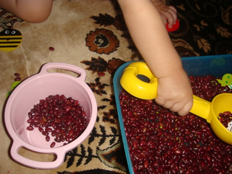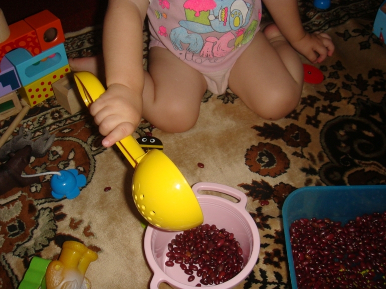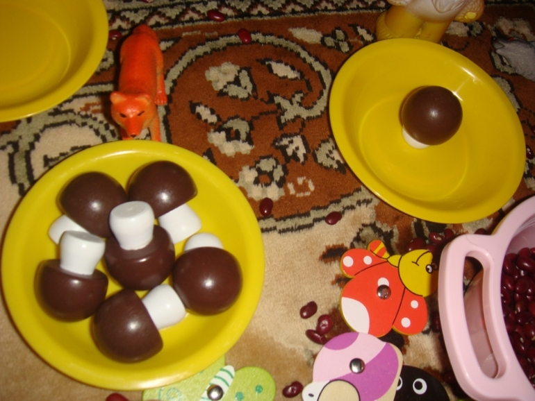 В процессе игры мама( т.е я) пыталась дать понятия "много - один - ничего".