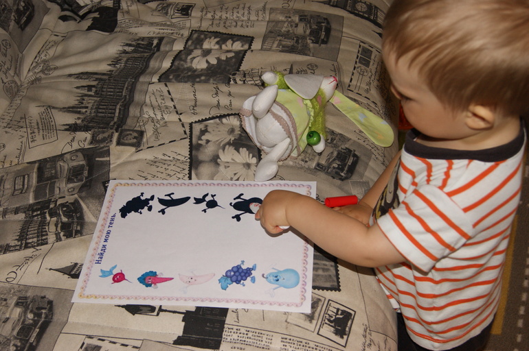 Еще искали тень, в этом плане уже есть небольшие сдвига, Митя ищет похожий предмет и показывает куда проводить линию
