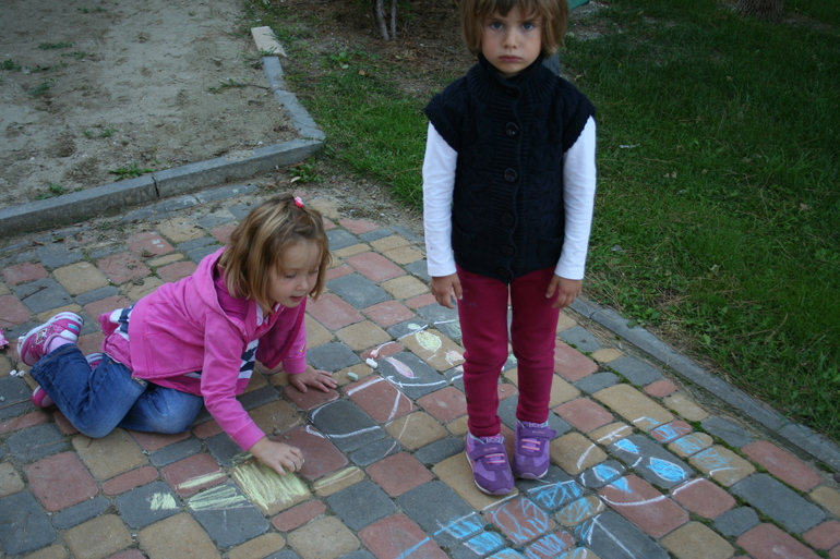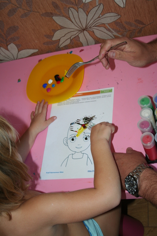 А это салон красоты на свежем воздухе :-) Я нарисовала лица, а все остальное с удовольствием дополнили девочки.