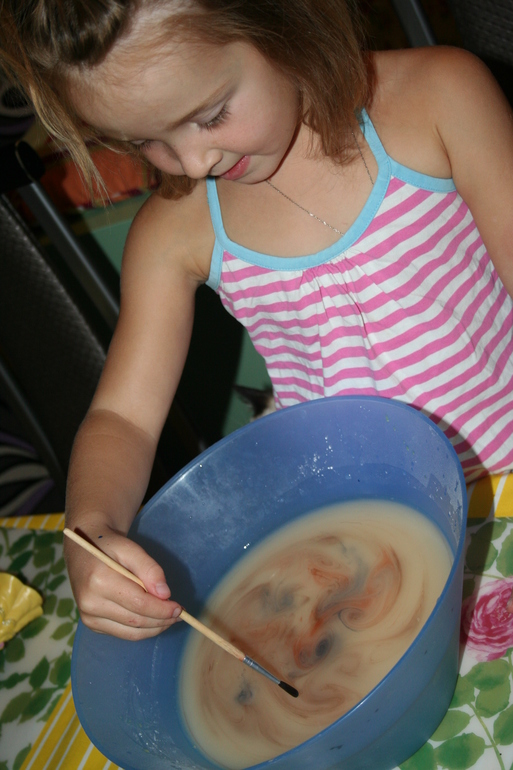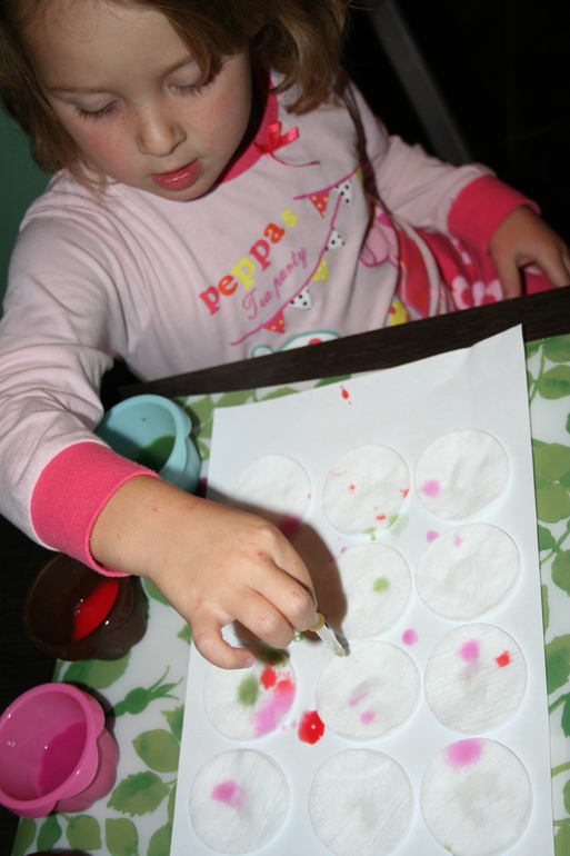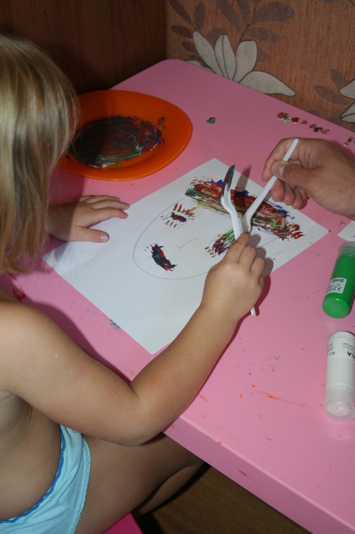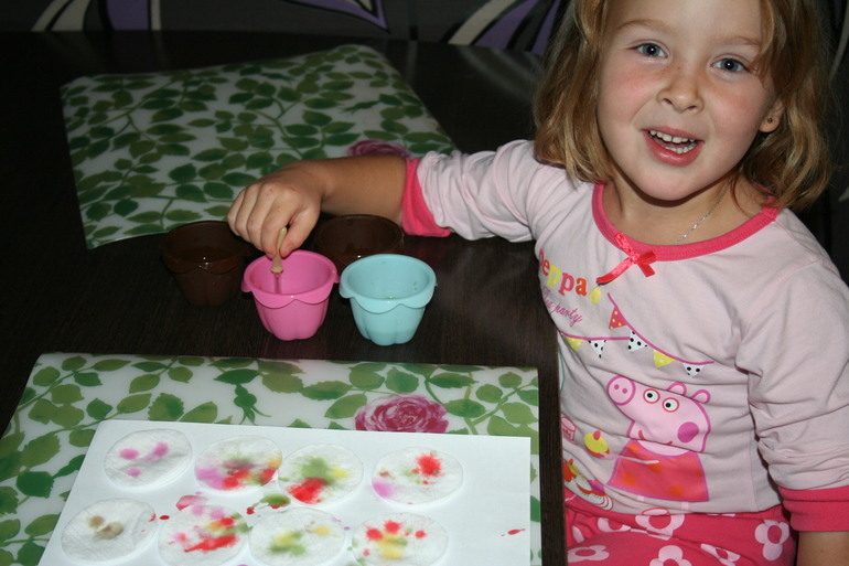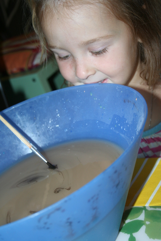 Потом Камилла очень активно и с энтузиазмом искала по квартире потерявшиеся игрушки, а напоследок мы очень долго и увлеченно спасали себя от обыденности с помощью нового развлечения - рисования на крахмальной воде. Поистине завораживающее занятие!