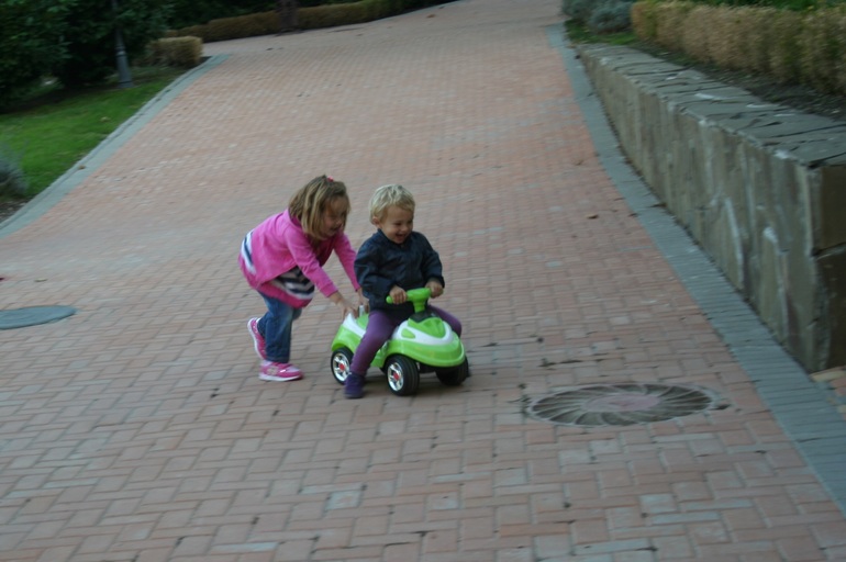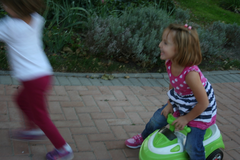 Но не только творчество и мелкая моторика были в нашей развлекательной программе, Камилик еще здорово погоняла с друзьями на машинке :-)
