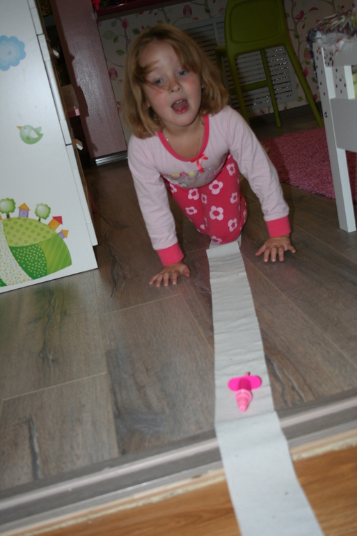 А еще выяснилось, что из туалетной бумаги получаются отличные сухопутные трассы, которые Камилла проходила не один раз самыми разными способами :-)