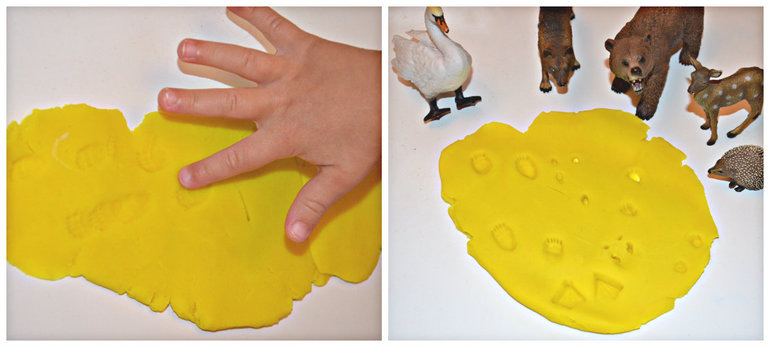 В прошлом году мы тоже делали отпечатки следов на тесте,но в этом году я задачу усложнила) Ладу попросила отвернутся, сама сделала отпечатки, а ей нужно было угадать где чей след) Вышло очень весело! А потом она делала, а я отворачивалась)