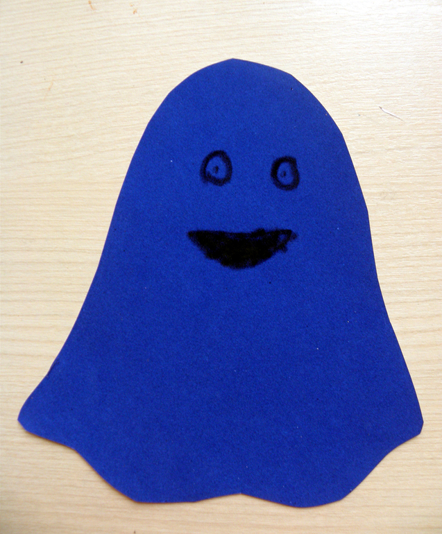 - вот такая стайка приведений поселилась на двери Сониной комнаты (я вырезала фигуры, Соня сама их разрисовыала, причем придумывала каждому историю, оказалась даже парочка близнецов)))
