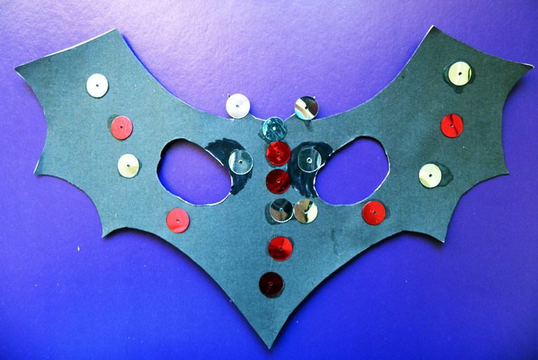- вырезала Соне маску летучей мыши, она украсила ее паетками
