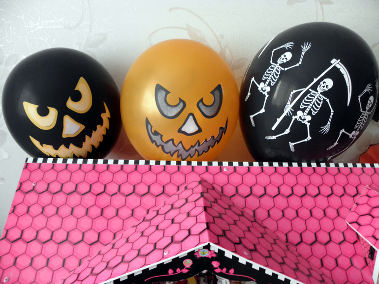 - еще пригодились воздушные шары по теме, развесили на лампах по всей кв и просто украшали дом