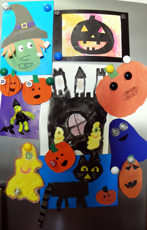 В общем к дню праздника у нас вся кв была в поделках и шариках, а холодильник в картинах: