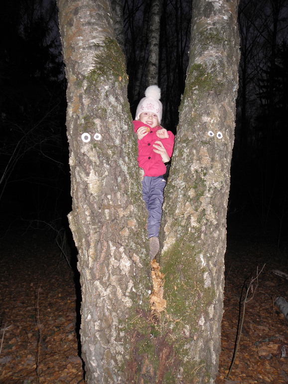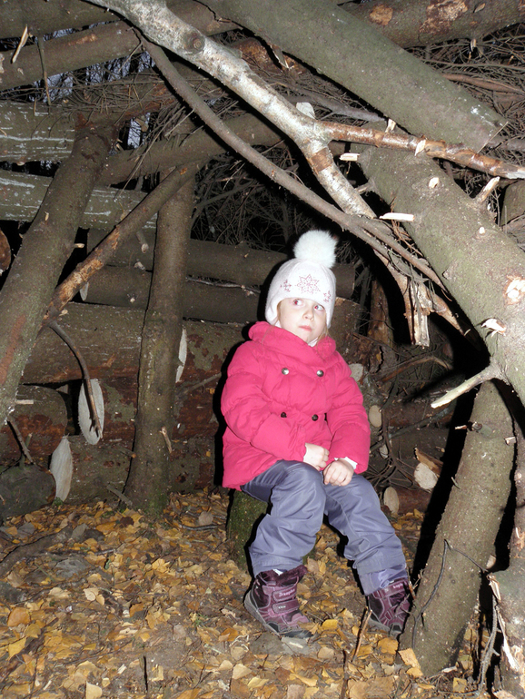Накануне праздника решили сходить на вечернюю прогулку в соседний лес, нашли там заброшенную хижину, поиграли в избушку Бабы Яги):