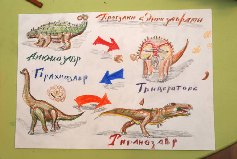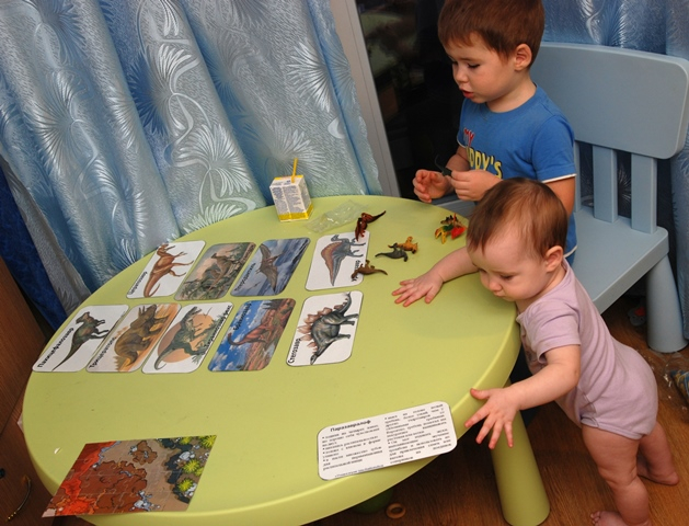 хотела еще продолжение написать, но времени совсем нет) Хорошая тема! Сейчас интерес немного ослаб у Миши, но про динозавриков не забыл, а книжки про них уже прятать начинаю. Успехов вам!